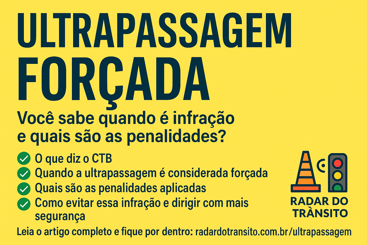 A ultrapassagem forçada ocorre quando o condutor insiste em realizar uma ultrapassagem mesmo quando o veículo da frente ou o trânsito da via não oferece espaço suficiente ou não dá condições para que a manobra seja feita com segurança.