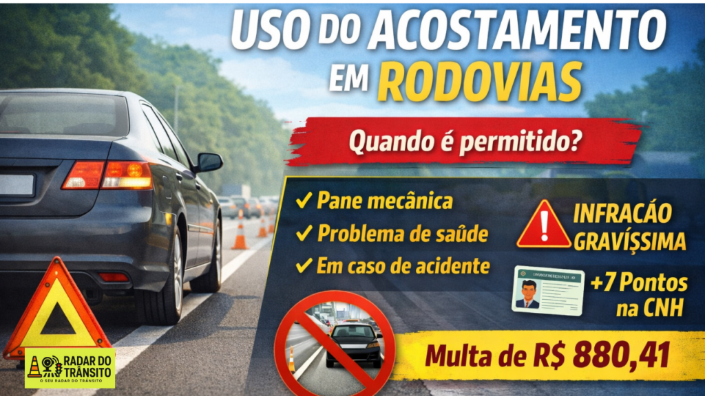De maneira geral, a recomendação é clara: o acostamento deve ser utilizado apenas em situações de emergência ou necessidade extrema.